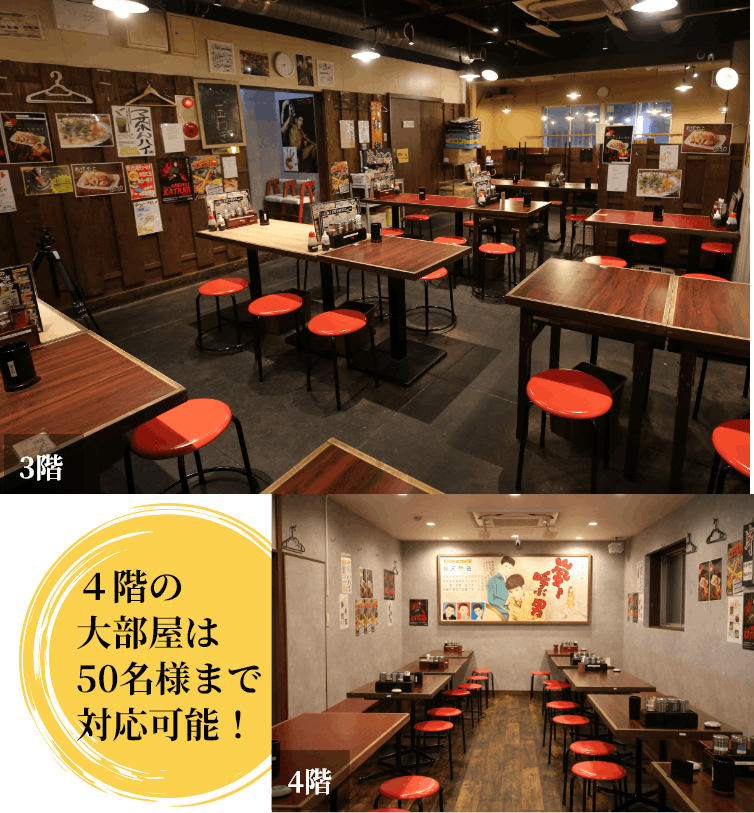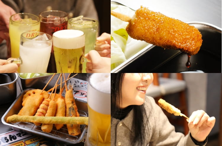 立ち食いではなく、椅子に座ってゆっくり楽しめる串カツ屋。にぎやかな雰囲気がありながらも、落ち着いて過ごせる店内は、観光での食事から宴会まで幅広いシーンに対応しています。最大100名までの宴会予約が可能で、20名・30名・50名規模のフロア貸切にも柔軟に対応(要相談)。大阪のど真ん中・道頓堀という立地で、大人数の宴会を楽しめるのも魅力のひとつです。